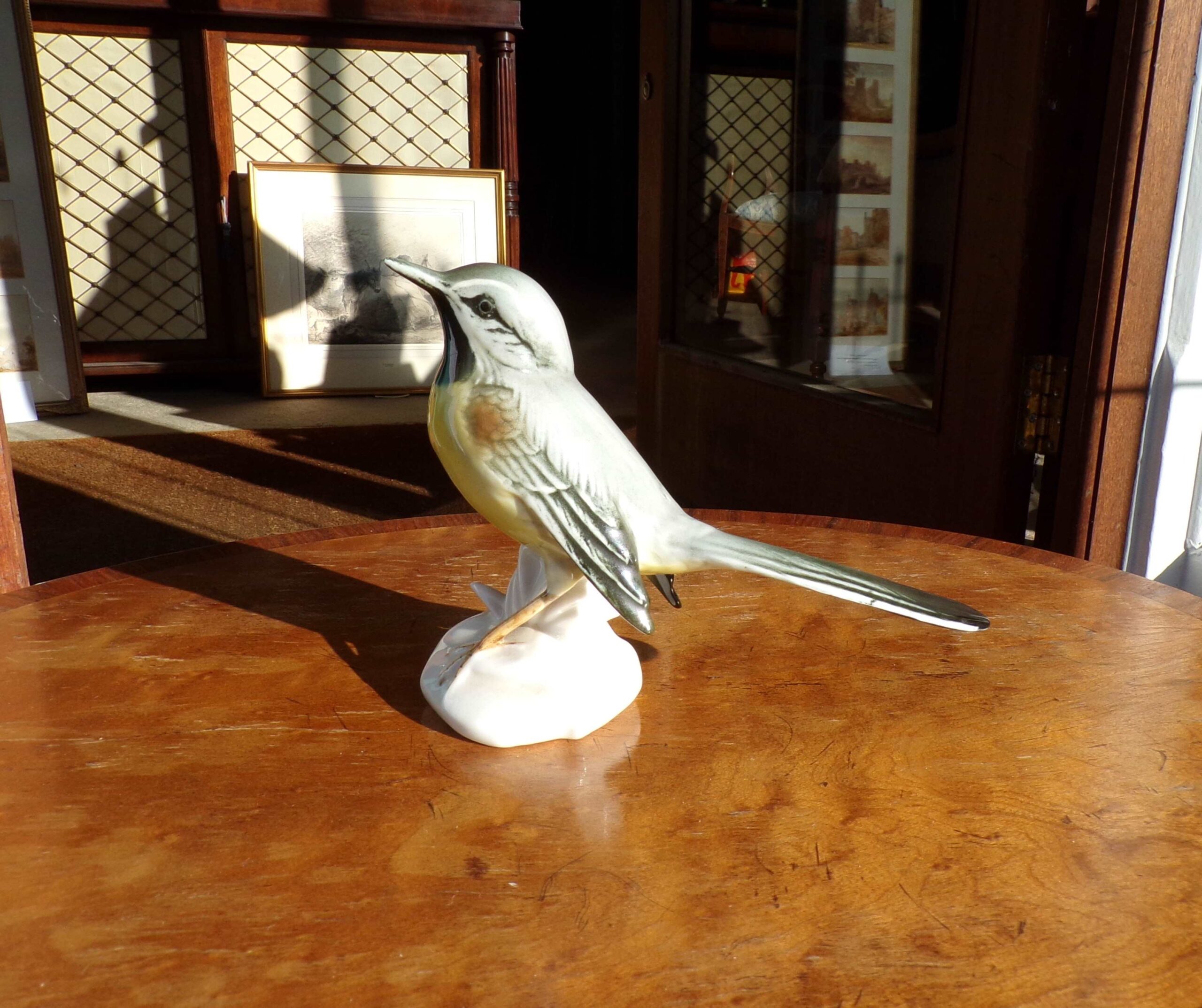 Mid-Century Karl Ens hand-painted porcelain grey wagtail