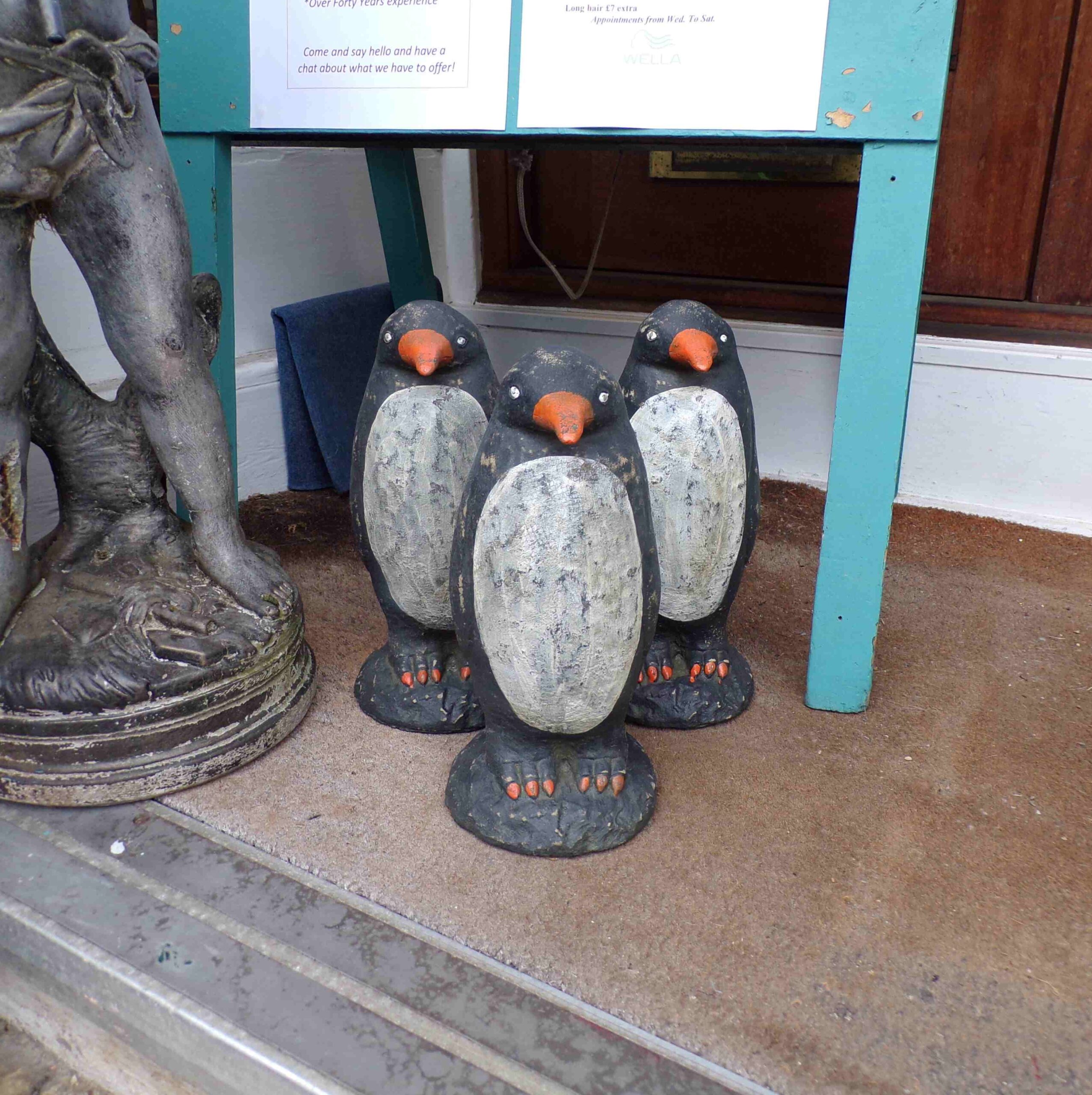 Trio of hand-painted cast penguins (12″ tall) – £38 each