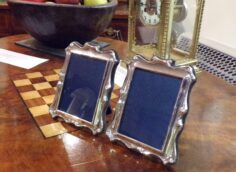Pair of small shaped silver picture frames (4″ by 5″)