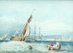 Miniature 19th Century maritime watercolour painting mounted in a faux rosewood frame