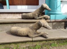 Sandstone cross-paw lying dog (Can be sold individually or as a pair)