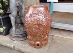 Impressive Victorian 19th Century salt glazed stoneware ceramic whisky keg with raised heraldic and foliate decoration – RESERVED