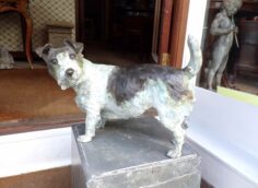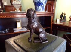 Solid bronze original signed study of a sitting dog (7″ tall)
