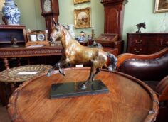 Beautifully observed original bronze equine study with coloured patina mounted on a marble plinth – Rearing horse