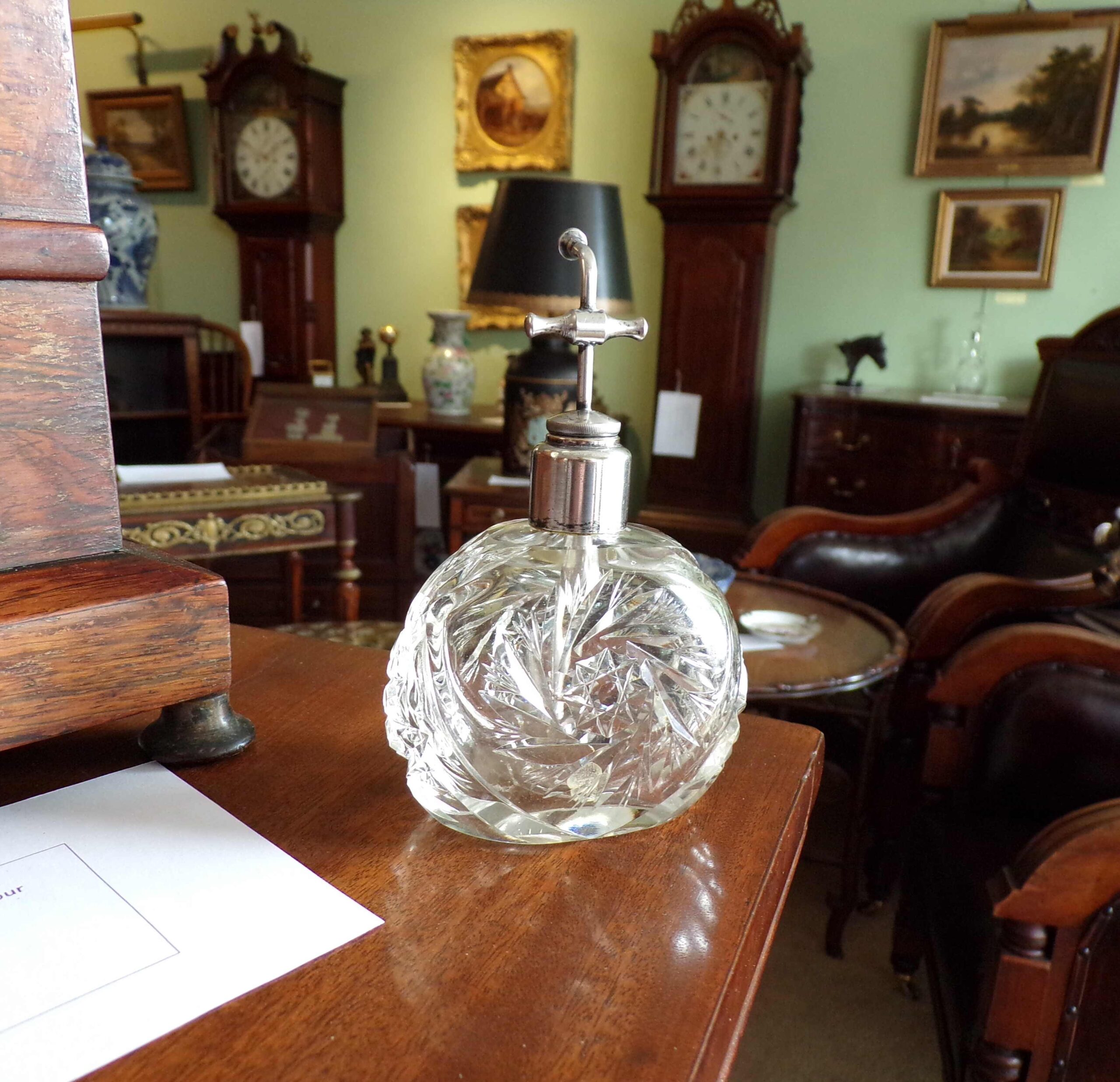 Antique cut glass perfume atomizer with star burst decoration Circa 1920-1930’s