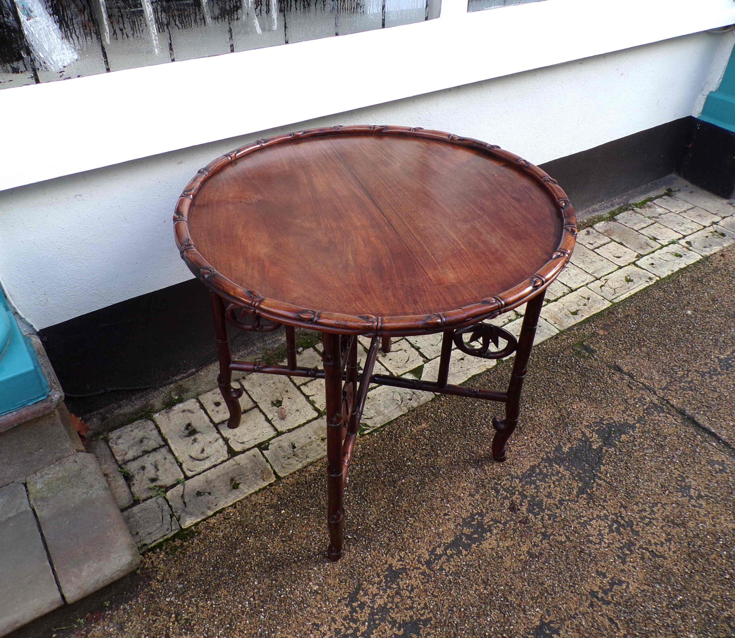 Late 19th Century Chinese hardwood circular low table with folding base, which be ideal as a coffee table or low lamp table