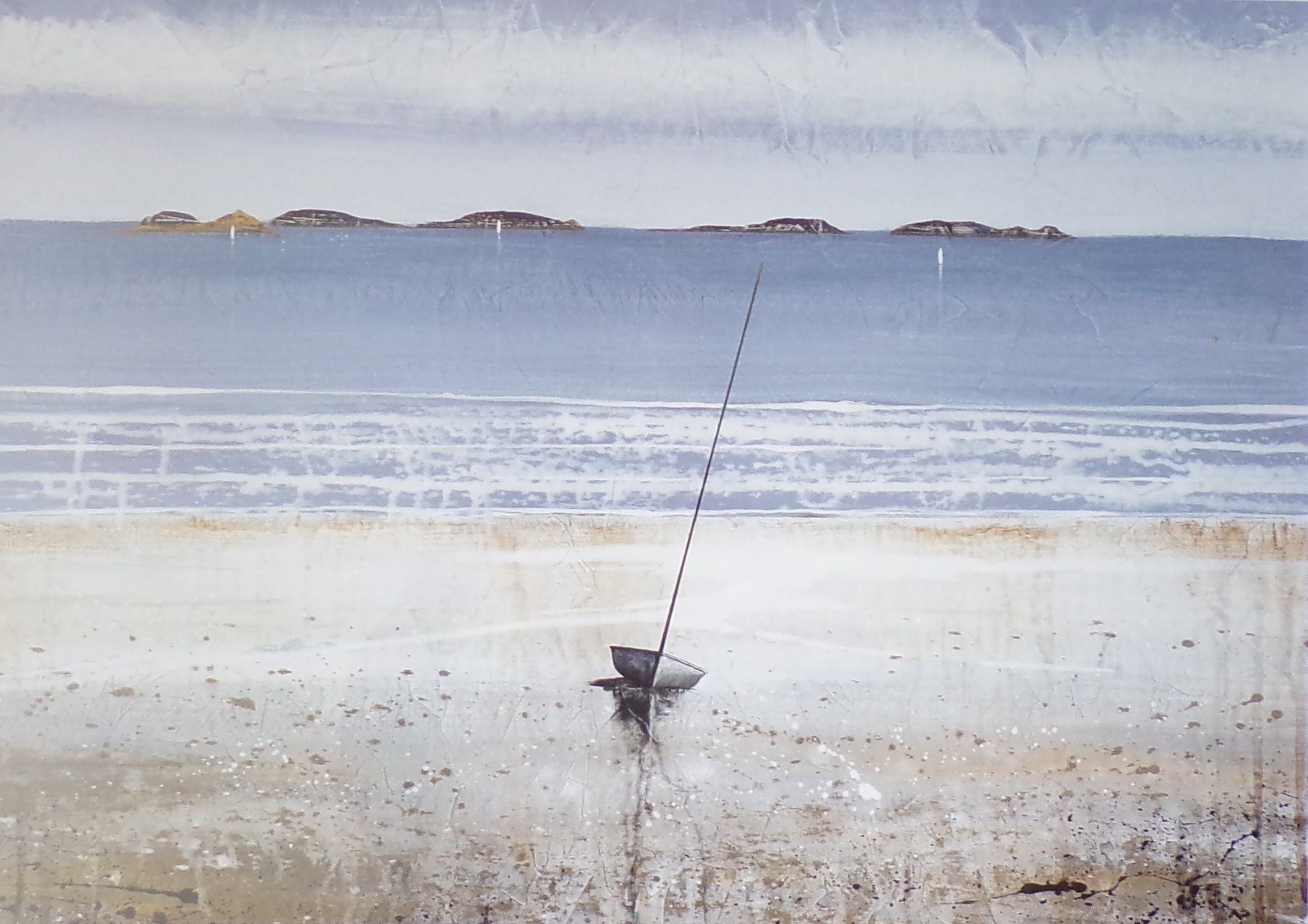 Large Signed oil on canvas by F.May (British), Unloading the catch