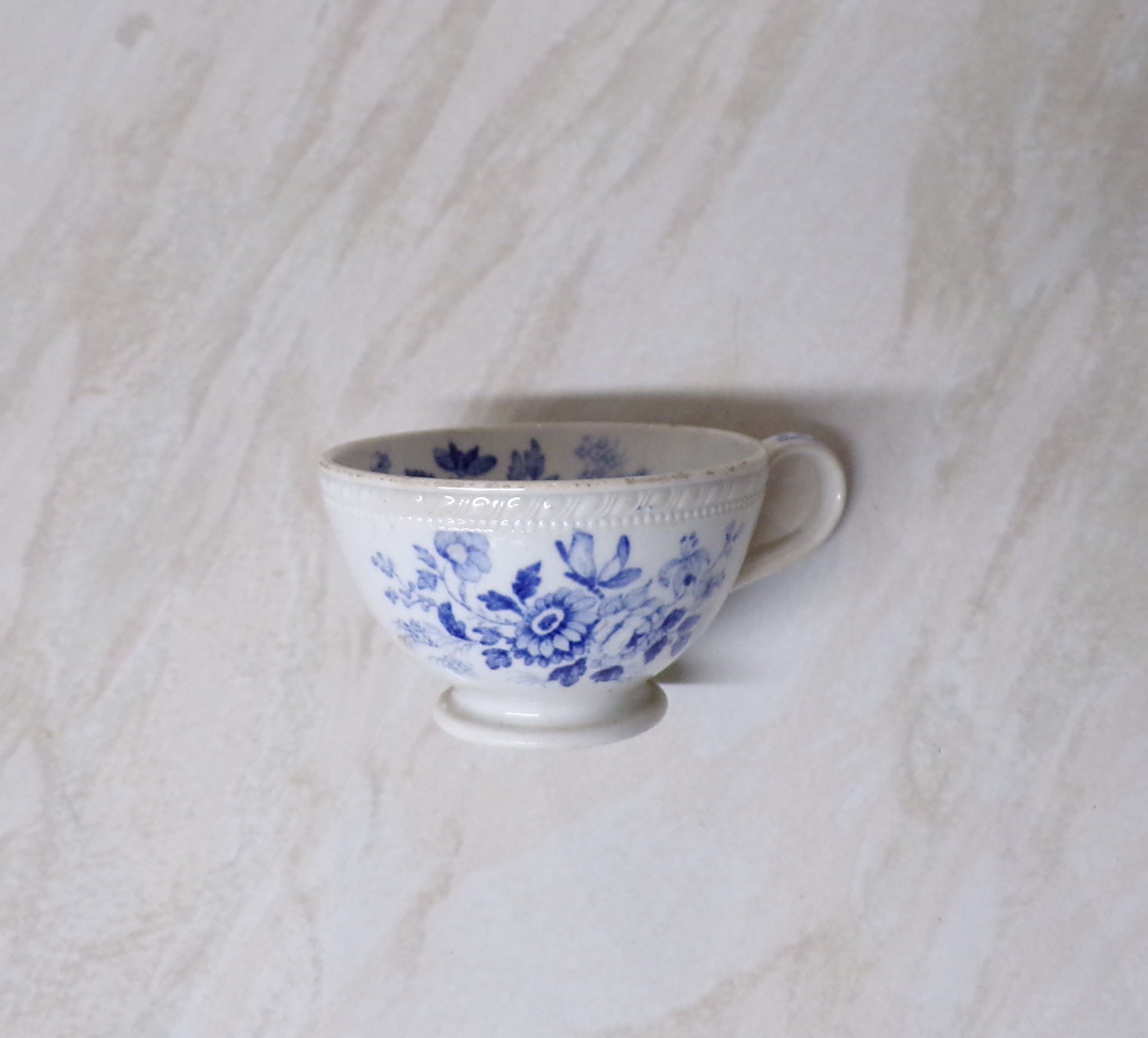 Early 19th Century small pearlware blue-and-white cup with floral sprigs Circa 1830