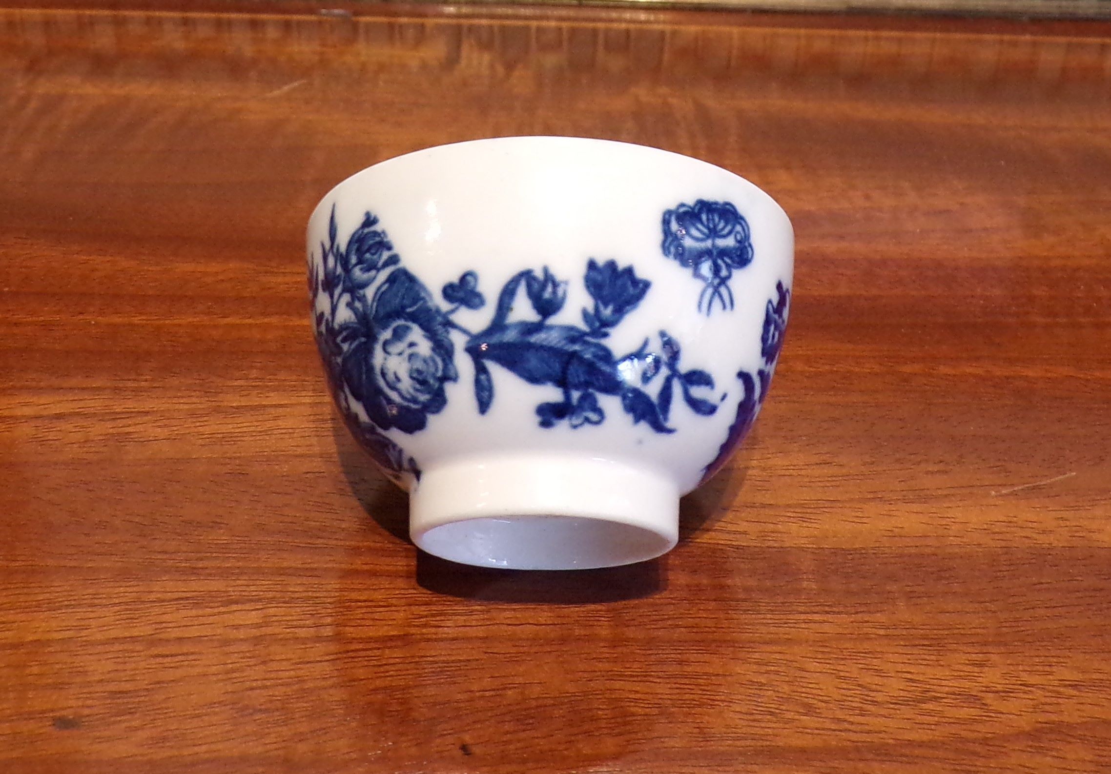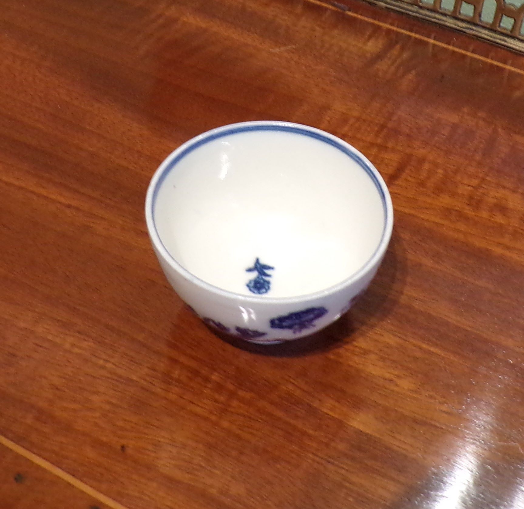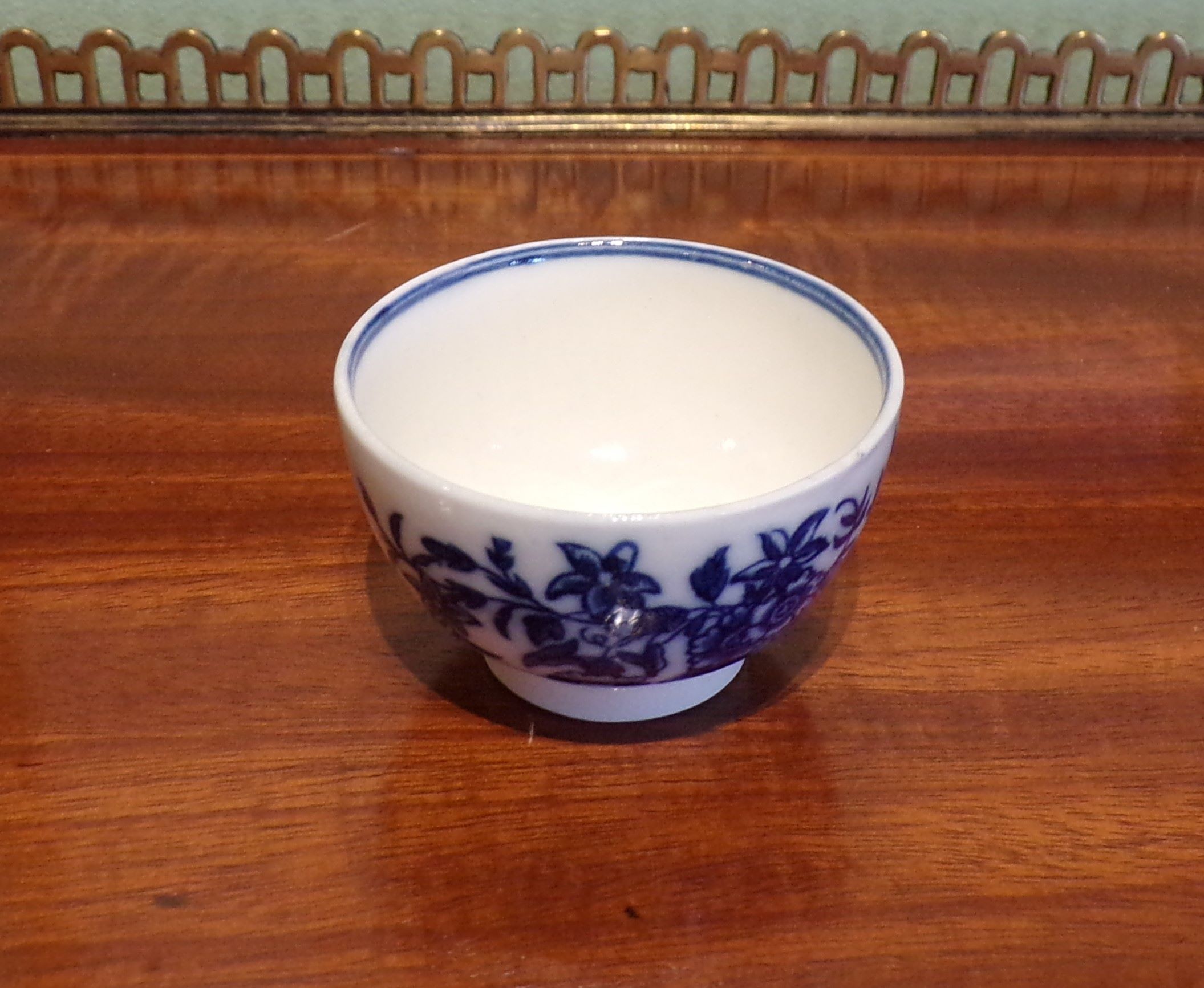 Miniature pearlware blue & white teabowl with Oriental pattern, Crescent mark Circa 1775