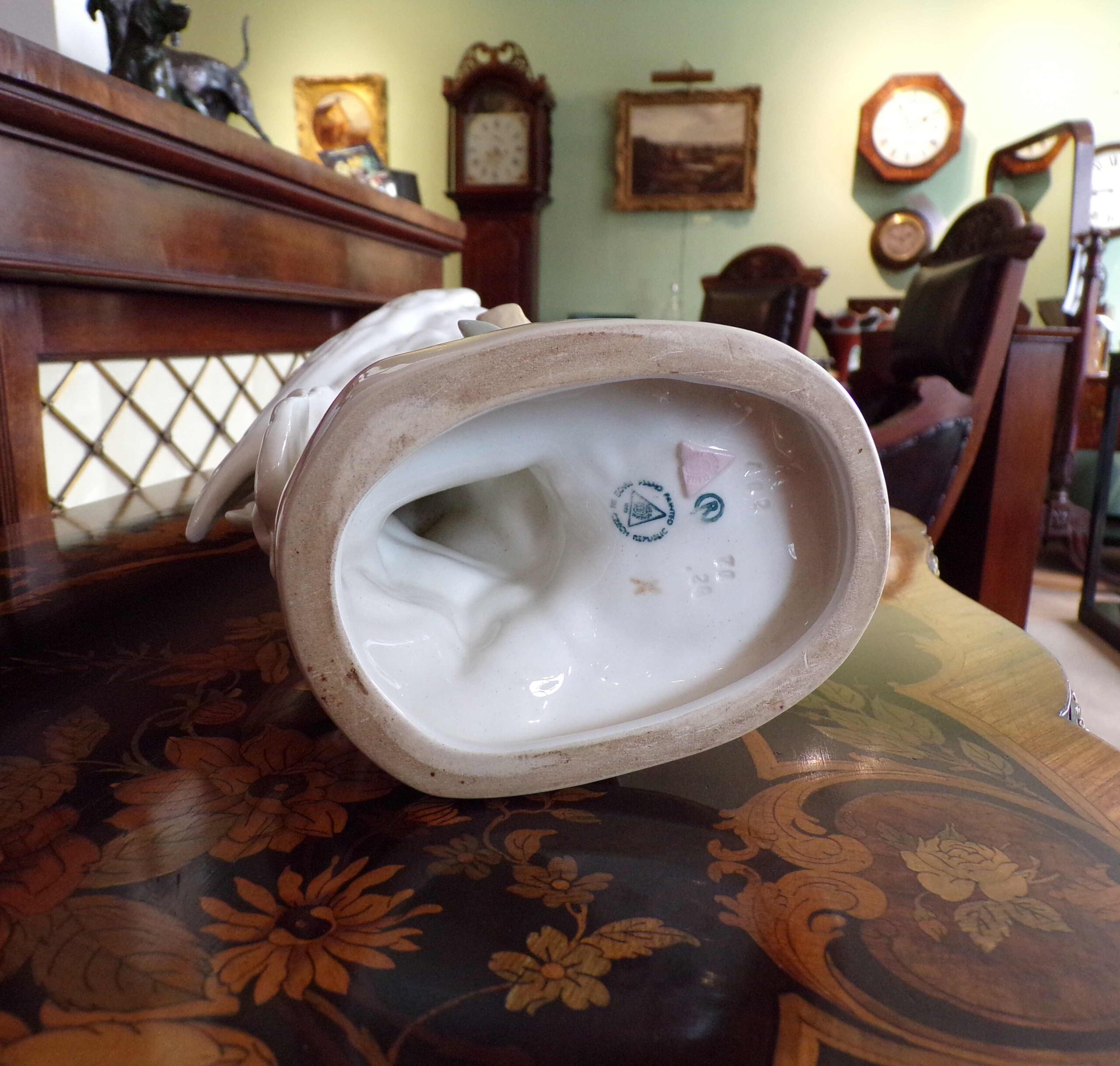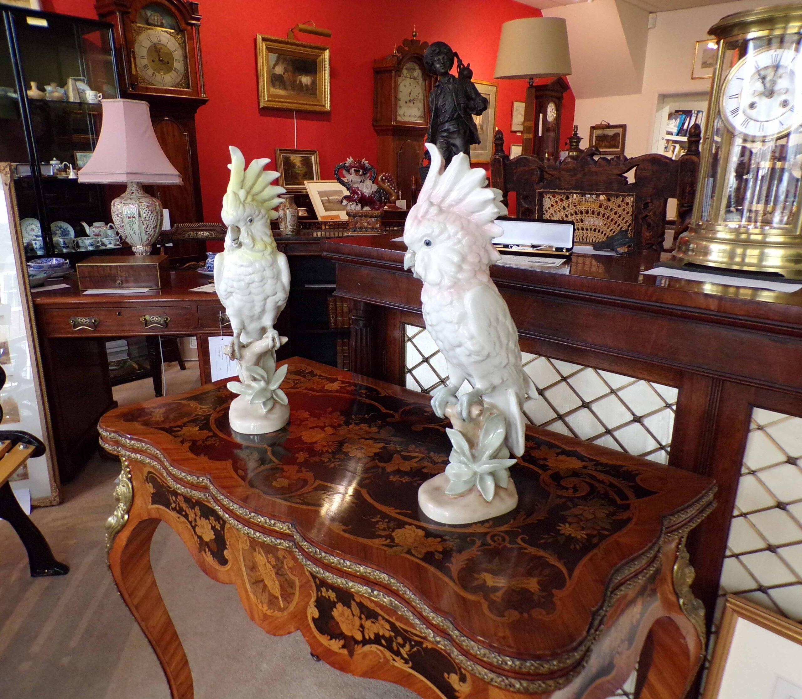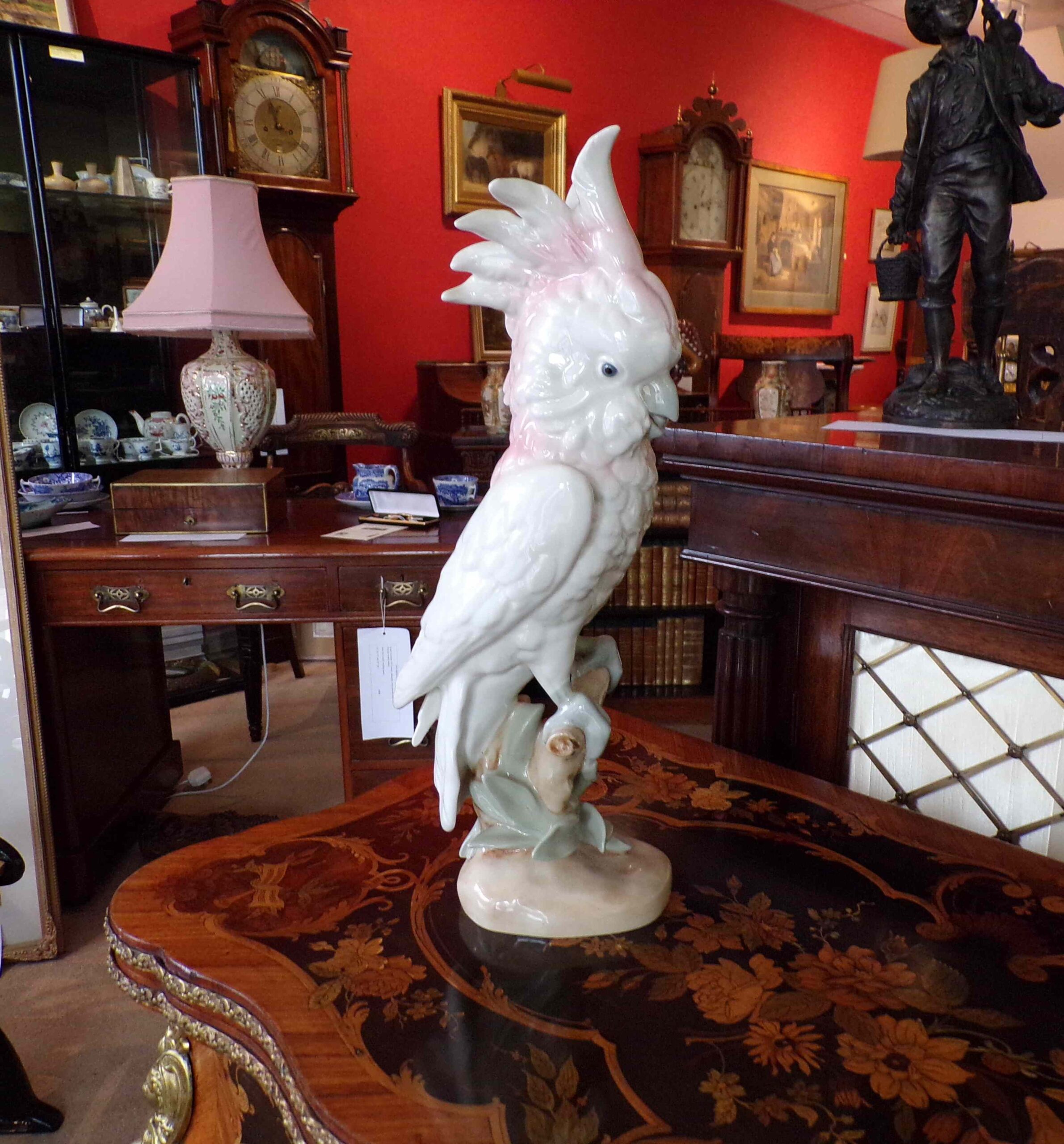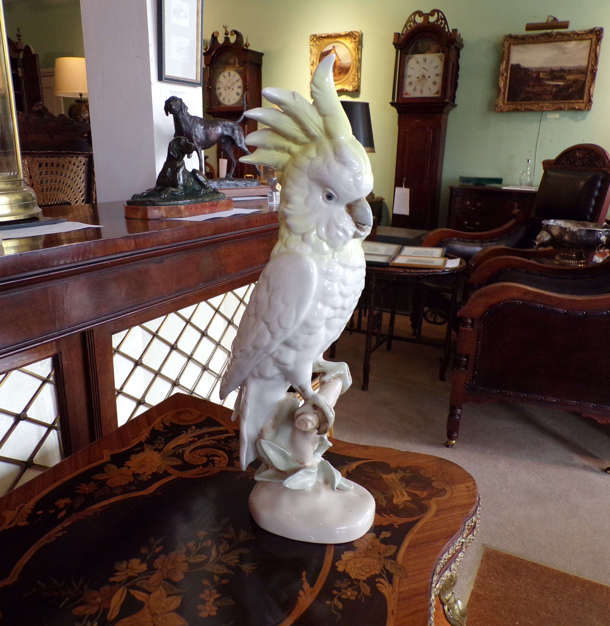 Pair of large and decorative Royal Dux cockatoo with makers stamp underneath