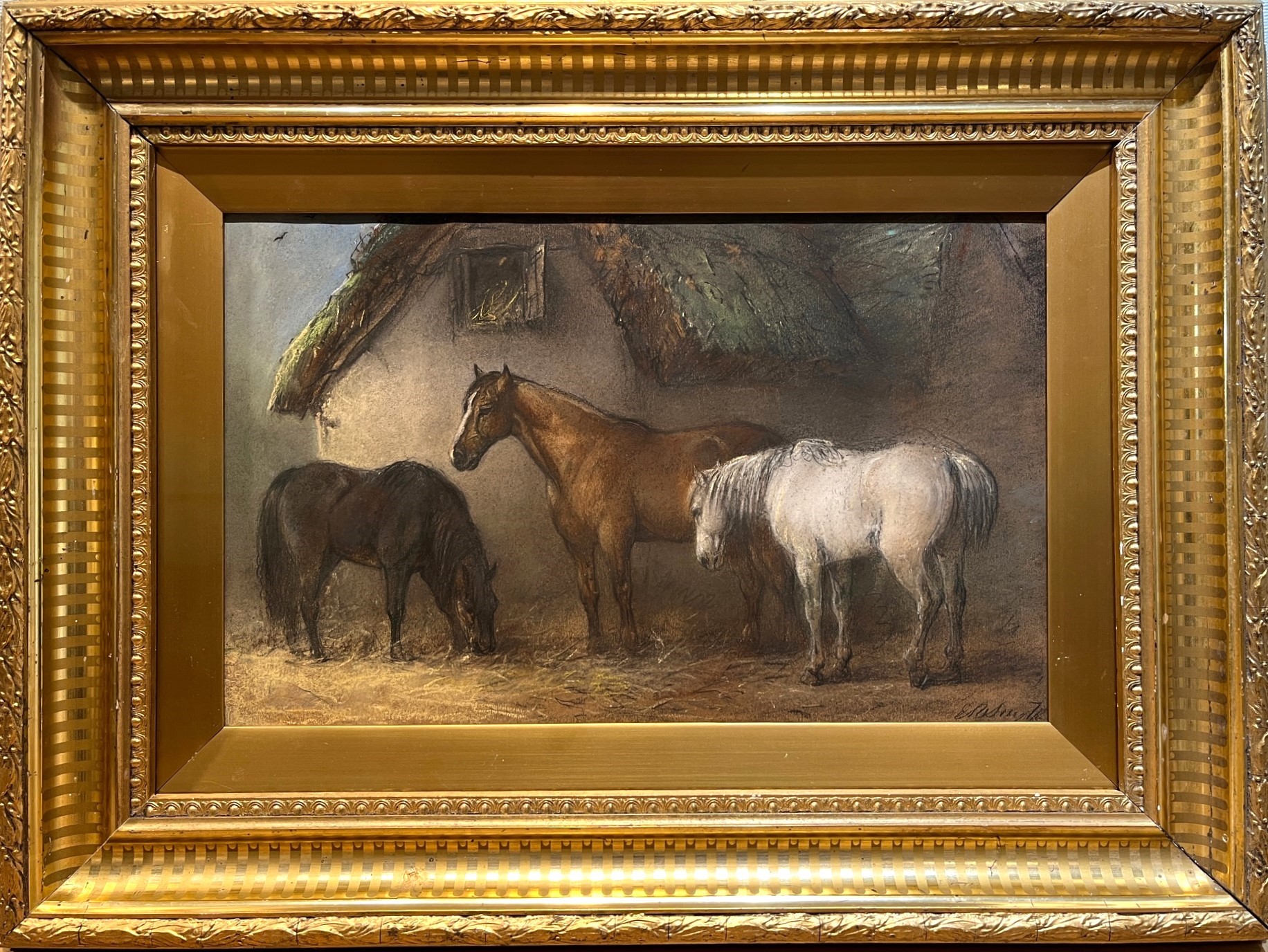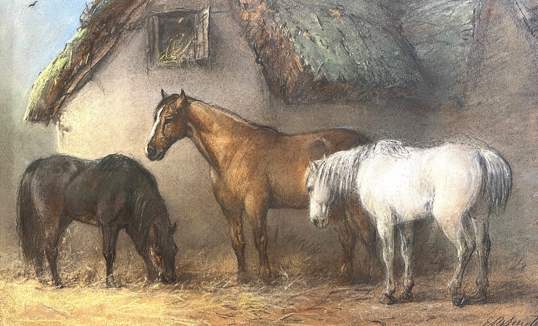 Edward Robert Smythe (1810-1899) – Signed pastel – Three Horses
